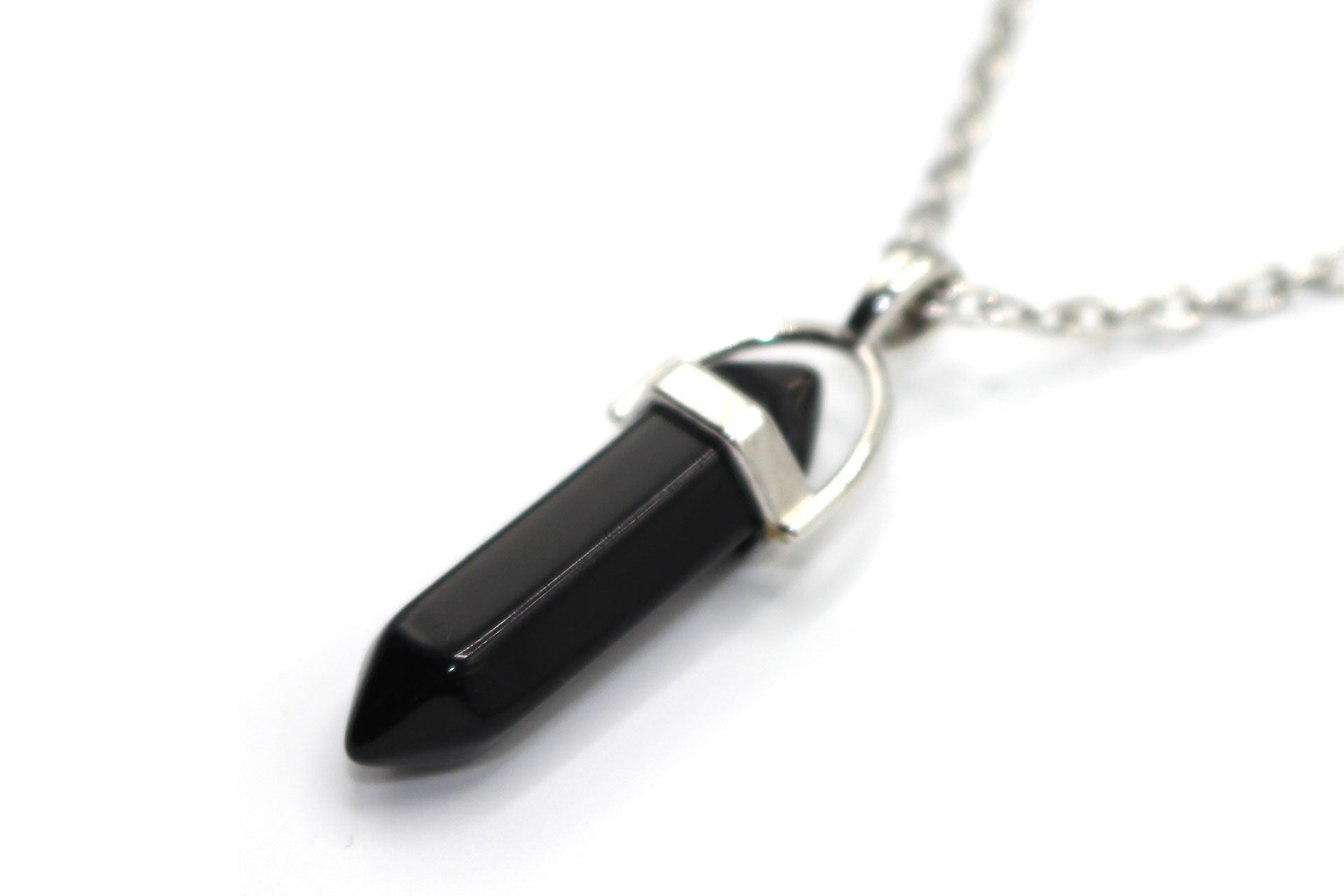 Black Agate Contemporary Dagger Pendant with a Silver Chain