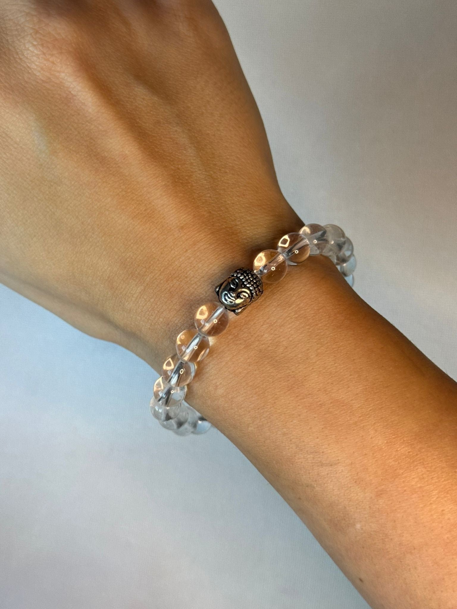 Introducing our stunning unisex bracelet, featuring exquisite round clear quartz beads and a single Buddha head bead. This beautiful bracelet is not only a stylish accessory, but it also carries a powerful energy that can help to enhance clarity and amplify positive energy.