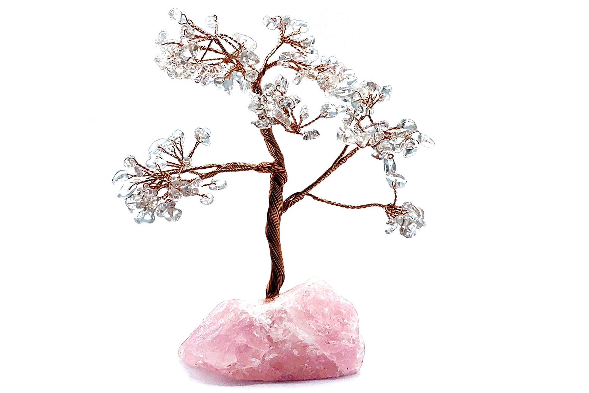Reiki Energy Charged Crystal Tree Of Life With Clear Quartz Crystals On A Solid Rose Quartz Base