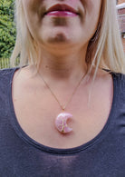 Rose Quartz Crystal Crescent Moon Pendant with Gold Chain