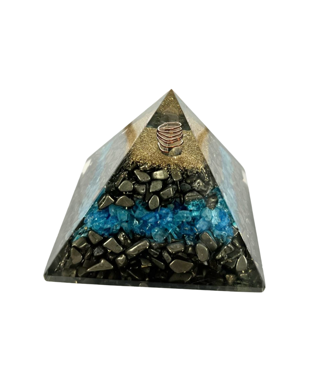 Embedded with a powerful orgone matrix (a fusion of resin, metal, and healing crystals), this pyramid works to neutralize negative energy, balance chakras, and shield against electromagnetic frequencies (EMFs). Reiki energy further enhances its vibrational field, promoting emotional harmony and motivation.