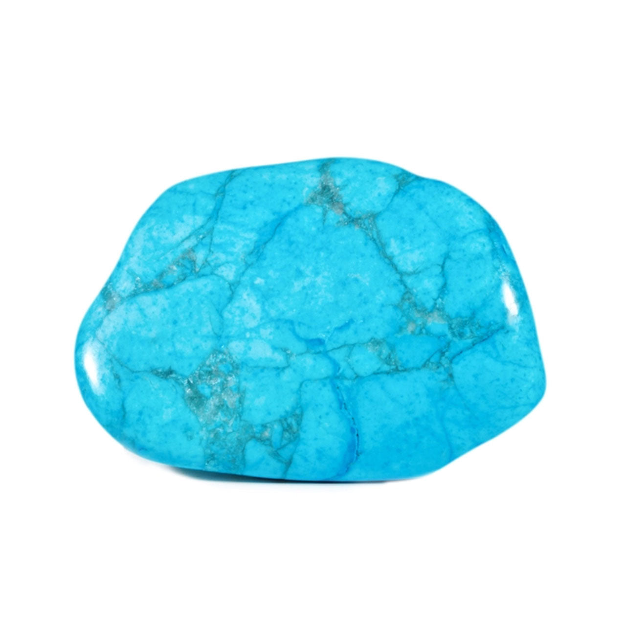 Blue Turquoise is an opaque stone that ranges from blue to green in colour. The most valuable stones are smooth, solid in colour while many stones have brown veins throughout. The word “Turquoise” comes from French meaning “Turkish” because the stone was introduced to Europe from Turkey.