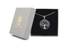 Black Agate Round Tree Of Life Pendant with Silver Chain