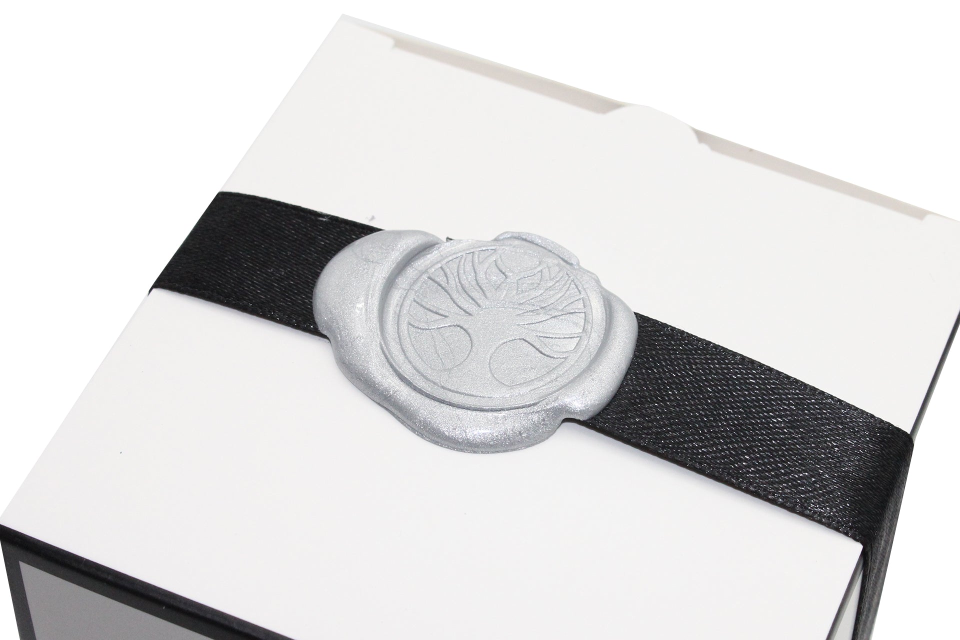 Gift Box: Our 30cl candles our packed in an elegant 84 x 84 x 103mm white box. They are wrapped in beautiful black ribbon and hand wax sealed with the Primal Chakra logo