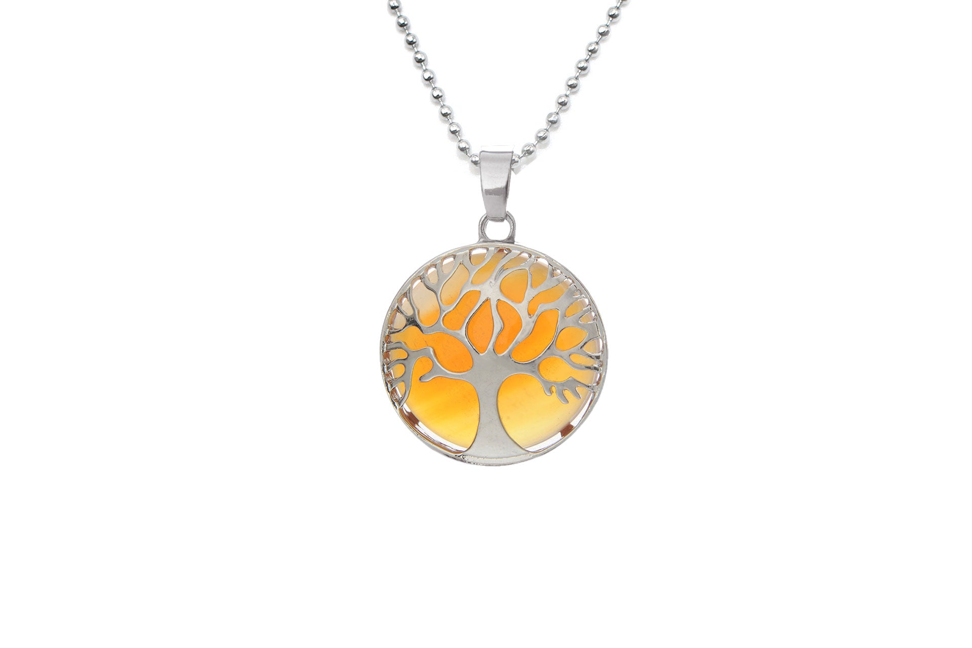 Yellow Agate Round Tree Of Life Pendant with Silver Chain